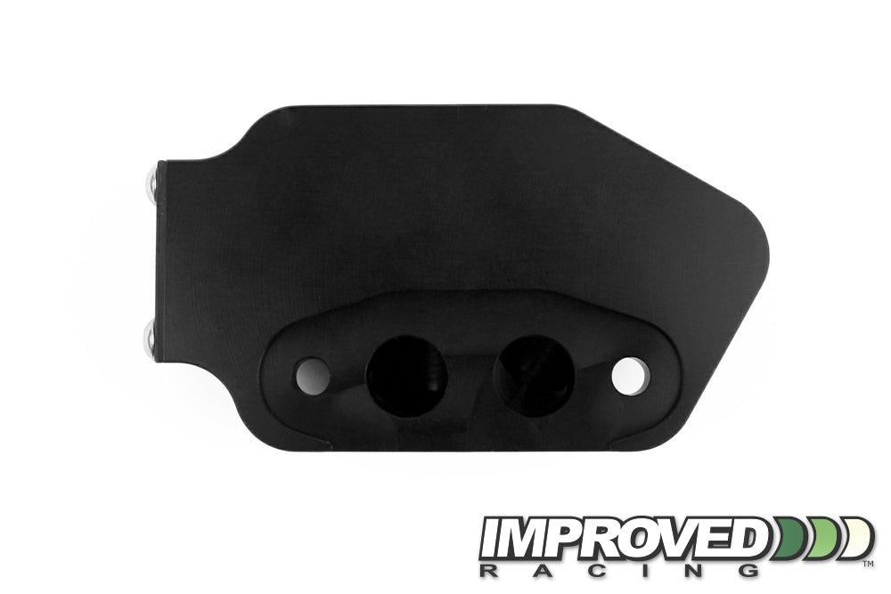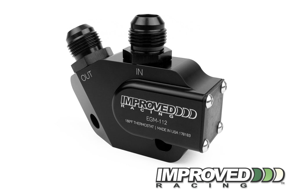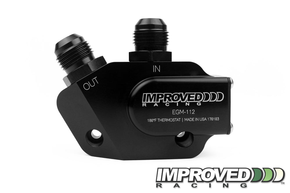 Improved Racing's low-profile oil cooler adapter bolts directly to the factory GM LS oil pan and features a built-in thermostat. The angled front cutout and a maximum thickness of just 1.30" makes this unit slim enough to clear most headers.